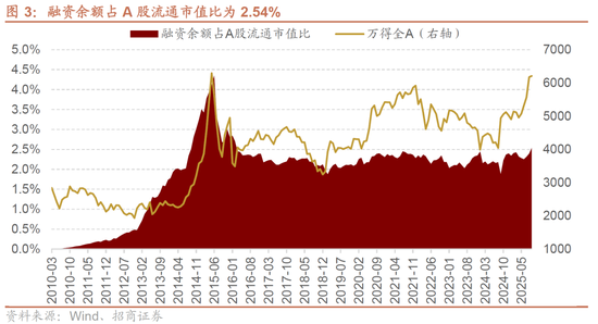 8月中旬以来融资余额持续稳定在2万亿以上运行。截至2025/9/18融资余额达到2.39万亿,绝对规模超过2015年6月历史高点,但是从相对规模看融资余额占A股流通比值仅2.54%(历史以来90%分位),距离2015年高点4.73%仍有距离。