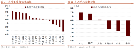 本周(9月15日-9月19日)A股市场主要指数涨多跌少。主要指数中,创业板指、科技龙头表现较好,分别上涨2.34%、2.22%;主要指数中上证50、大盘价值表现较弱,分别下跌1.98%、3.23%。本周日均成交额25718.46亿元,周度上涨10.55%。